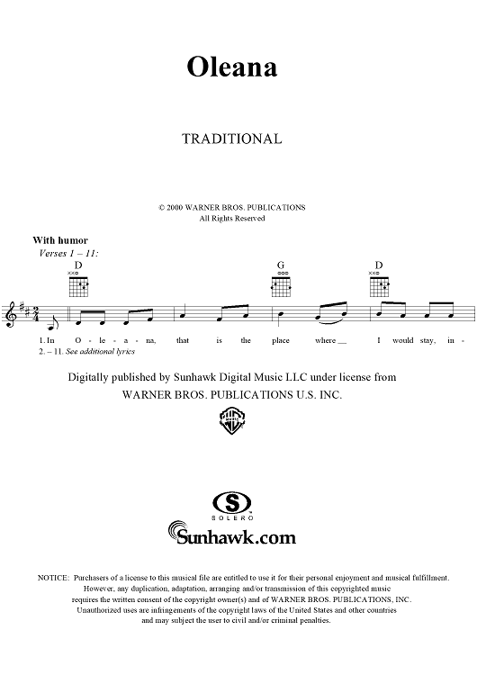 Digital Sheet Music for Oleana by Traditional scored for Lead Sheet; id:292608