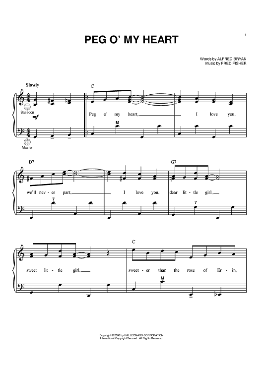 "Peg O' My Heart" Sheet Music by Alfred Bryan