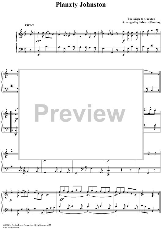 Digital Sheet Music for Planxty Johnston by , Turlough O'Carolan, Edward Bunting scored for Piano Solo; id:165096