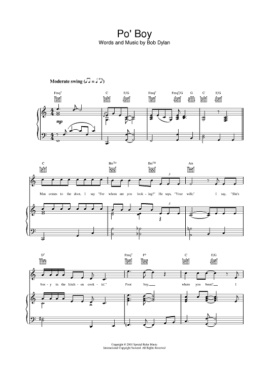 "Po' Boy" Sheet Music by Bob Dylan