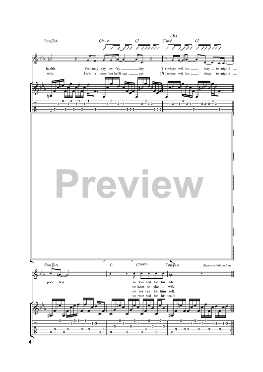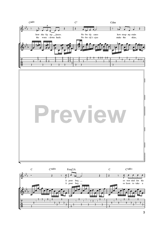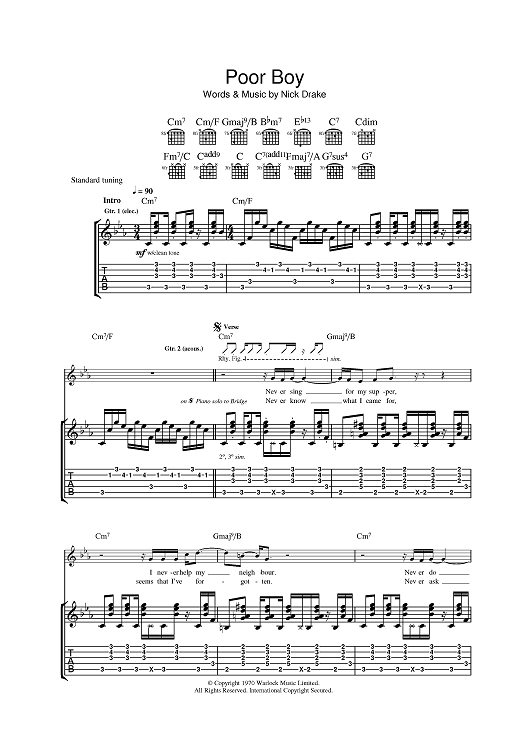 Digital Sheet Music for Poor Boy by Nick Drake scored for Guitar Tab; id:387312