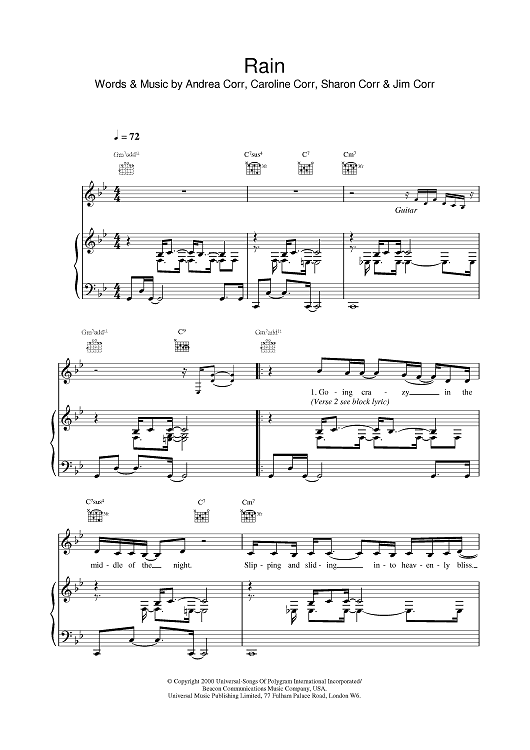 Digital Sheet Music for Rain by The Corrs scored for Piano/Vocal/Chords; id:380001