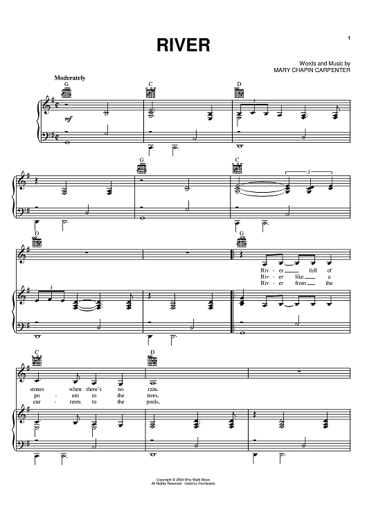 Digital Sheet Music for River by Mary Chapin Carpenter scored for Piano/Vocal/Chords; id:379315