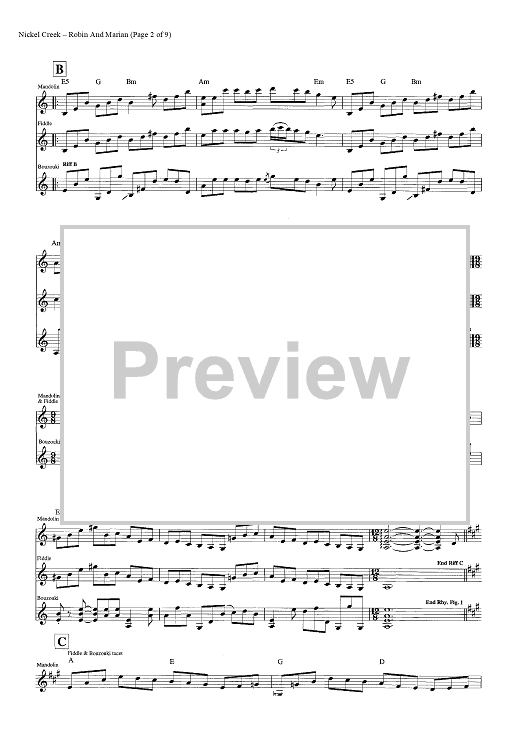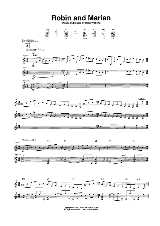 Digital Sheet Music for Robin And Marian by Nickel Creek, Sean Watkins scored for Guitar Tab; id:444624