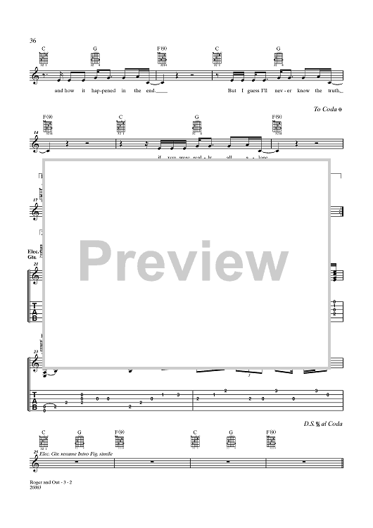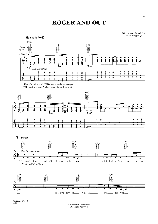 Digital Sheet Music for Roger and Out by Neil Young scored for Guitar Tab/Vocal; id:357669