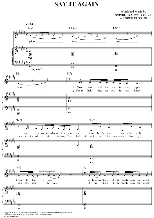 Digital Sheet Music for Say It Again by Greg Kurstin, Frances scored for Piano/Vocal/Chords; id:460404