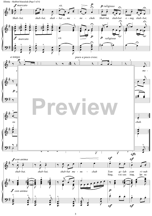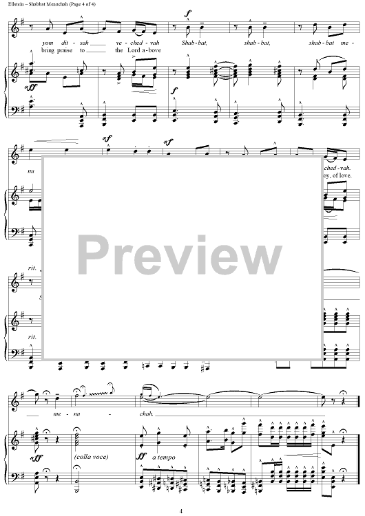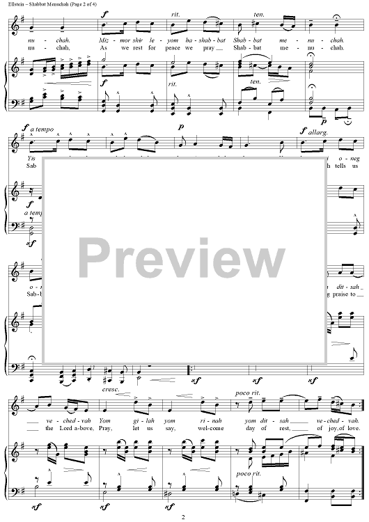 Digital Sheet Music for Shabbat Menuchah (Song of Sabbath) by Abraham Ellstein, Richard Tucker scored for Piano/Vocal/Chords; id:422418