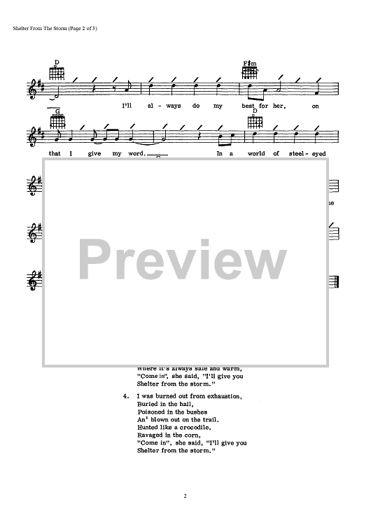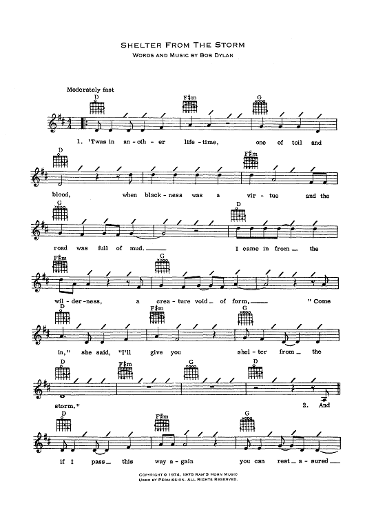 "Shelter From The Storm" Sheet Music by Bob Dylan