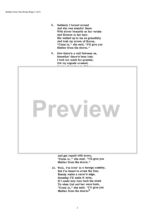 Digital Sheet Music for Shelter From The Storm by Bob Dylan scored for Lead Sheet; id:466309