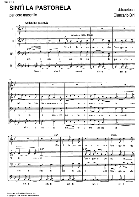 Digital Sheet Music for Sintì la pastorella by , Giancalro Bini, Traditional scored for Male Choir; id:334439