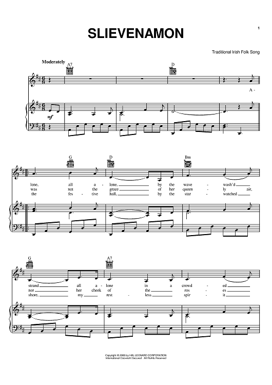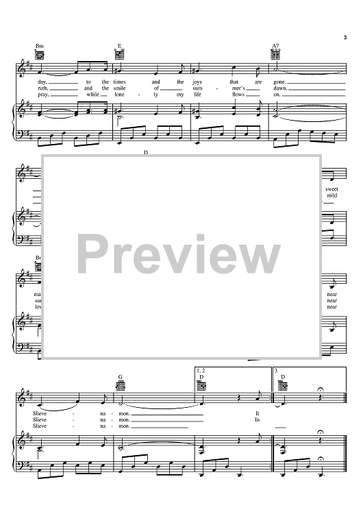 Digital Sheet Music for Slievenamon by scored for Piano/Vocal/Chords; id:394003