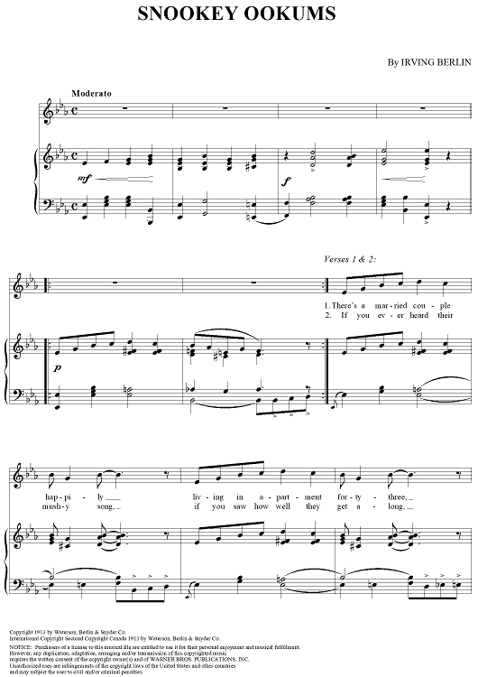 Digital Sheet Music for Snookey Ookums by Irving Berlin scored for Piano/Vocal; id:275606