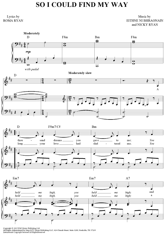 Digital Sheet Music for So I Could Find My Way by Enya, Nicky Ryan, Roma Ryan scored for Piano/Vocal/Chords; id:464364