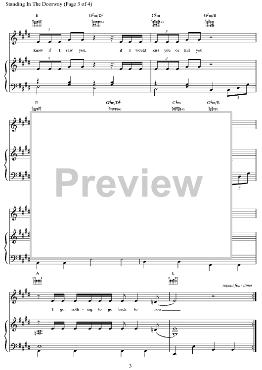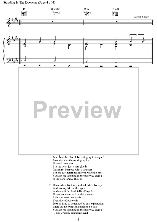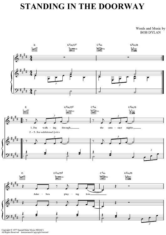 Digital Sheet Music for Standing In The Doorway by Bob Dylan scored for Piano/Vocal/Chords; id:379863
