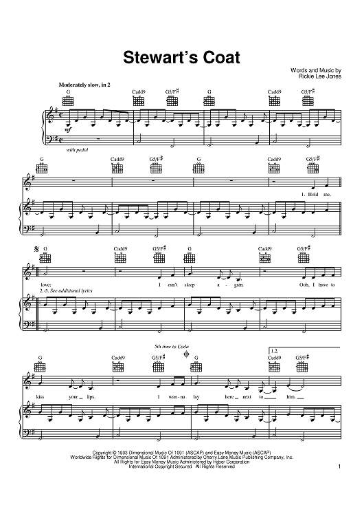 "Stewart's Coat" Sheet Music by Rickie Lee Jones