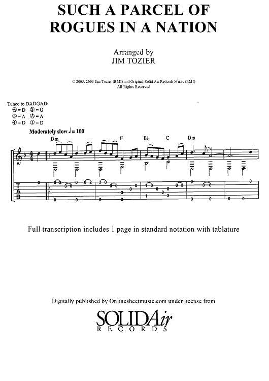 "Such a Parcel of Rogues in a Nation (No MP3)" Sheet Music by Jim Tozier