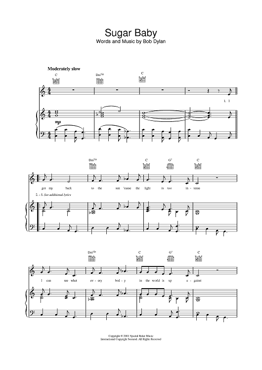 "Sugar Baby" Sheet Music by Bob Dylan