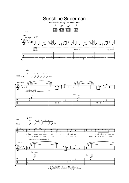 Digital Sheet Music for Sunshine Superman by Donovan scored for Guitar Tab; id:391609