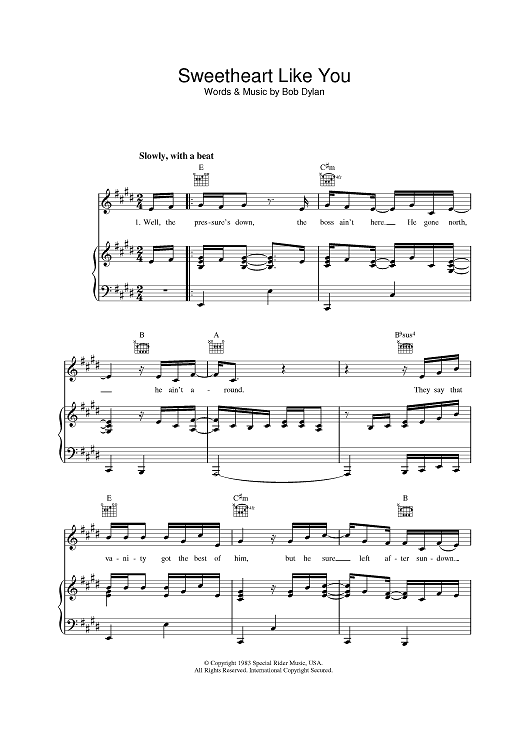 Digital Sheet Music for Sweetheart Like You by Bob Dylan scored for Piano/Vocal/Chords; id:389940