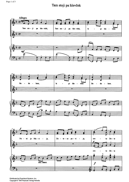 Digital Sheet Music for Tam stoji pa hlevcek by , Marco Sofianopulo, Traditional scored for Female Chorus/Piano; id:329843