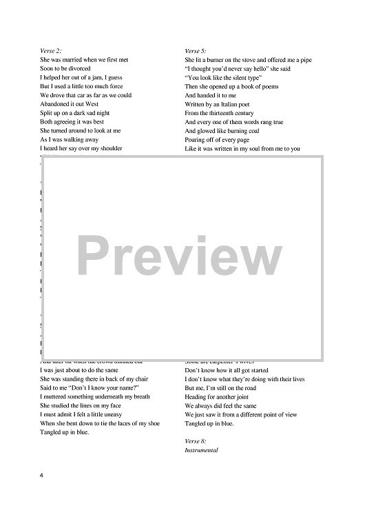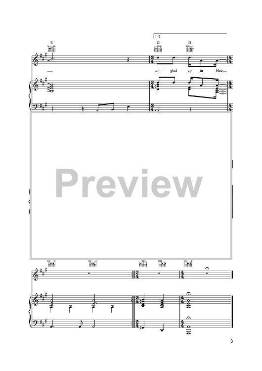 Digital Sheet Music for Tangled Up In Blue by Bob Dylan scored for Piano/Vocal/Chords; id:387438