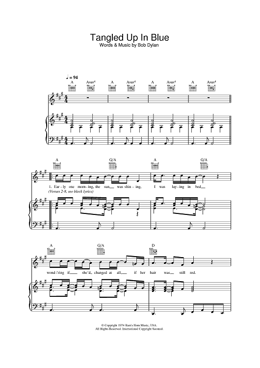 "Tangled Up In Blue" Sheet Music by Bob Dylan