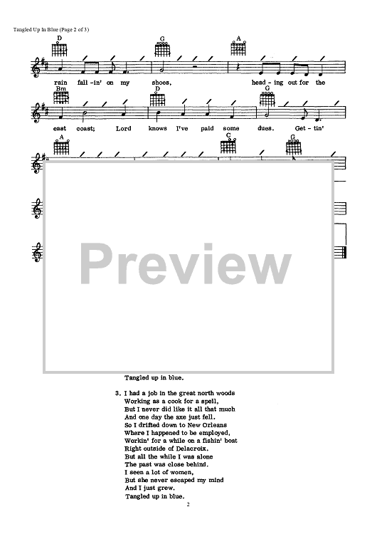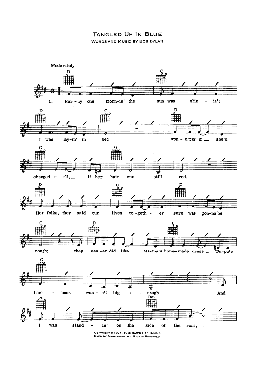 "Tangled Up In Blue" Sheet Music by Bob Dylan
