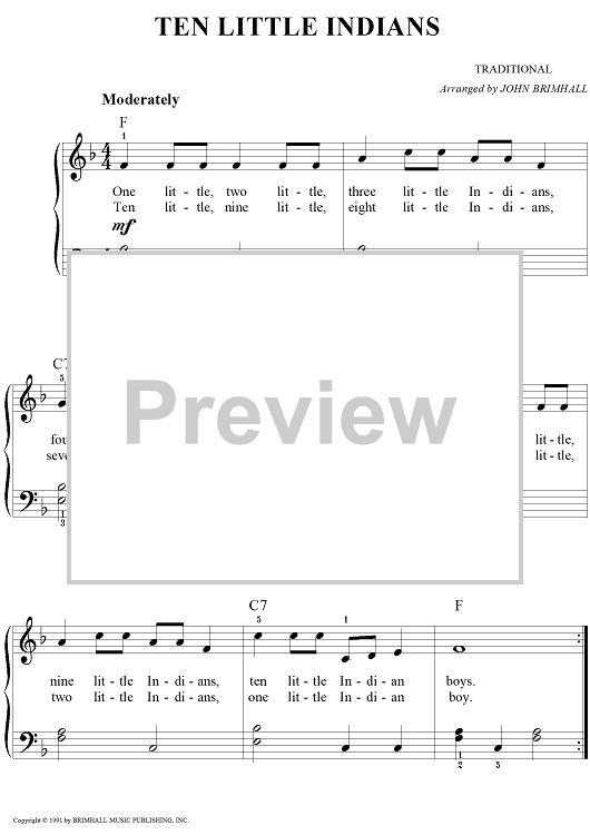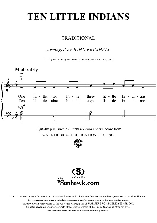 Digital Sheet Music for Ten Little Indians by John Brimhall, Traditional scored for Easy Piano/Vocal; id:262084