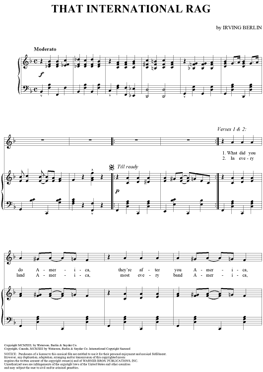 Digital Sheet Music for That International Rag by Irving Berlin scored for Piano/Vocal; id:275169