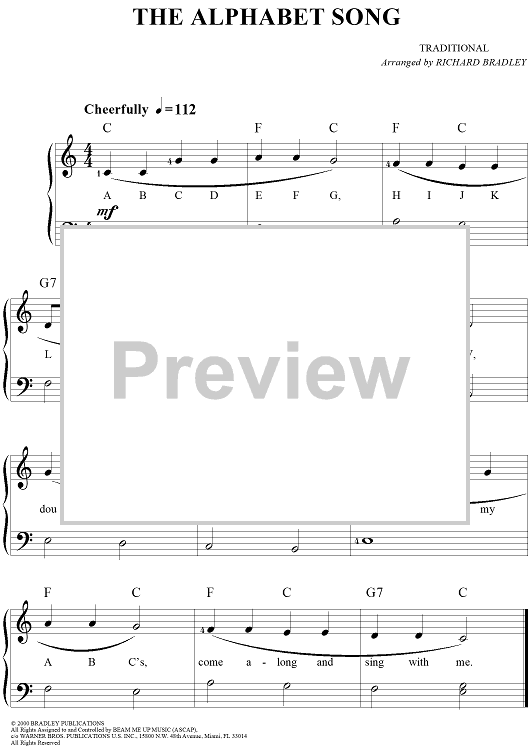 Digital Sheet Music for The Alphabet Song by Richard Bradley, Traditional scored for Easy Piano/Vocal; id:293004