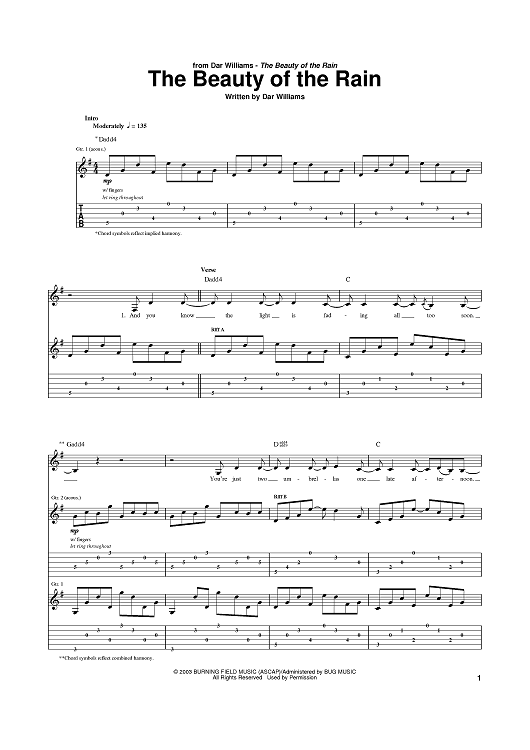 Digital Sheet Music for The Beauty Of The Rain by Dar Williams scored for Guitar Tab; id:385627
