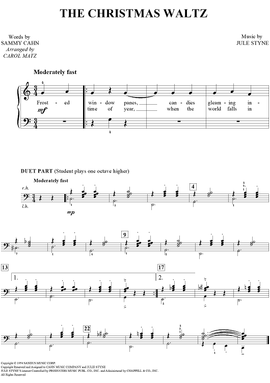 Digital Sheet Music for The Christmas Waltz by Jule Styne, Sammy Cahn, Carol Matz scored for Piano; id:453420