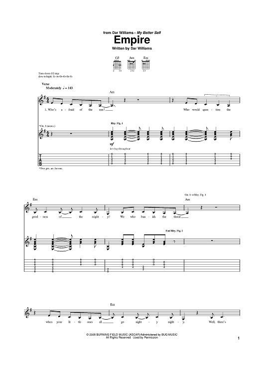 Digital Sheet Music for The Empire by Dar Williams scored for Guitar Tab; id:385639