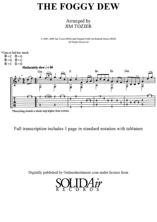 "The Foggy Dew (No MP3)" Sheet Music by Jim Tozier