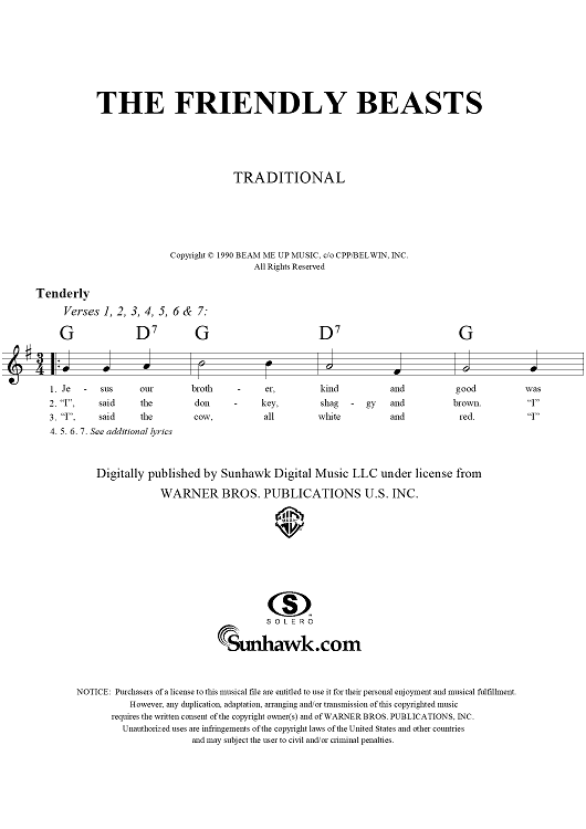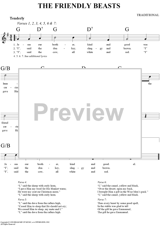 Digital Sheet Music for The Friendly Beasts by Traditional scored for Lead Sheet; id:260949