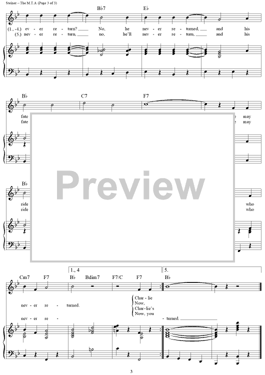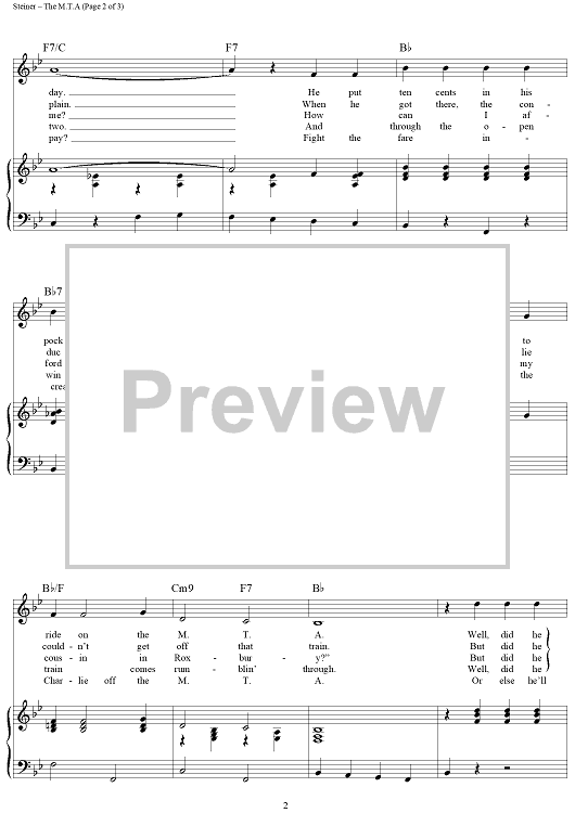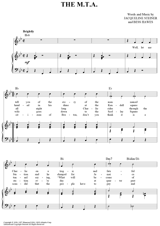 Digital Sheet Music for The M.T.A. by Kingston Trio, Jacqueline Steiner, Bess Hawes scored for Piano/Vocal/Chords; id:441307