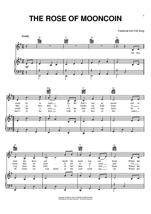 Digital Sheet Music for The Rose Of Mooncoin by scored for Piano/Vocal/Chords; id:394019