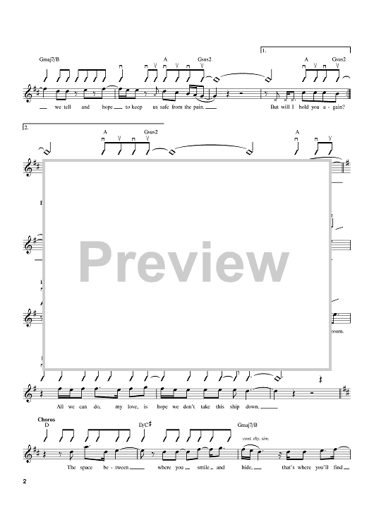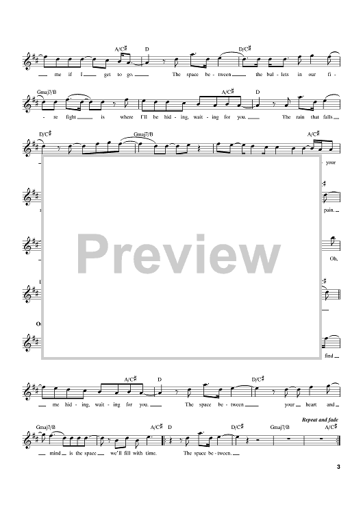 Digital Sheet Music for The Space Between by Glen Ballard, Dave Matthews Band, Dave Matthews scored for Lead Sheet with Guitar Grids; id:374844