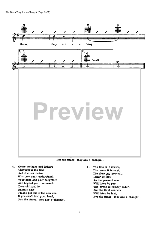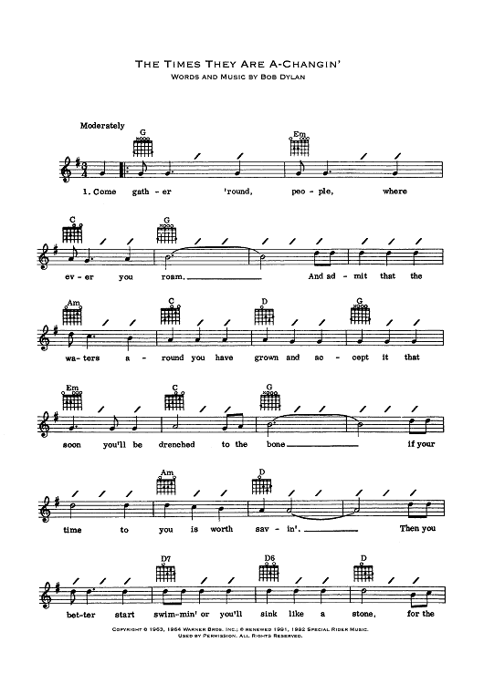 "The Times They Are A-Changin'" Sheet Music by Bob Dylan