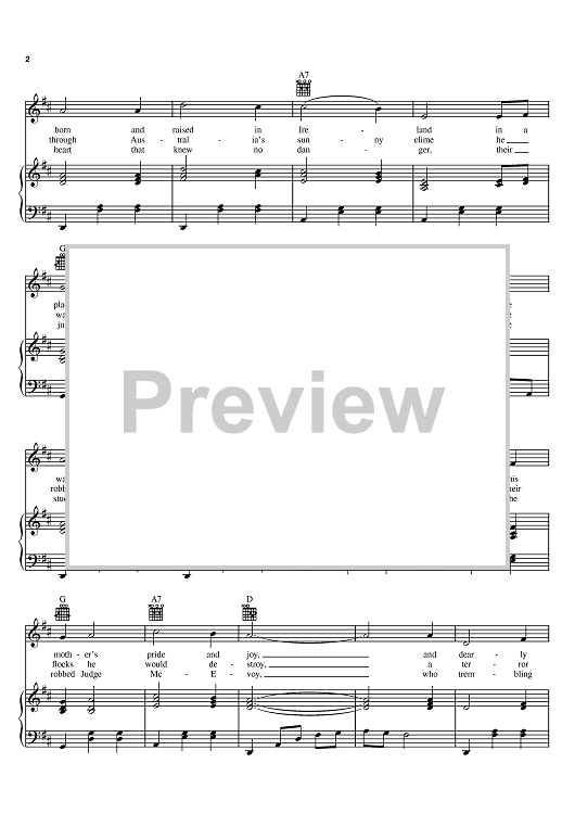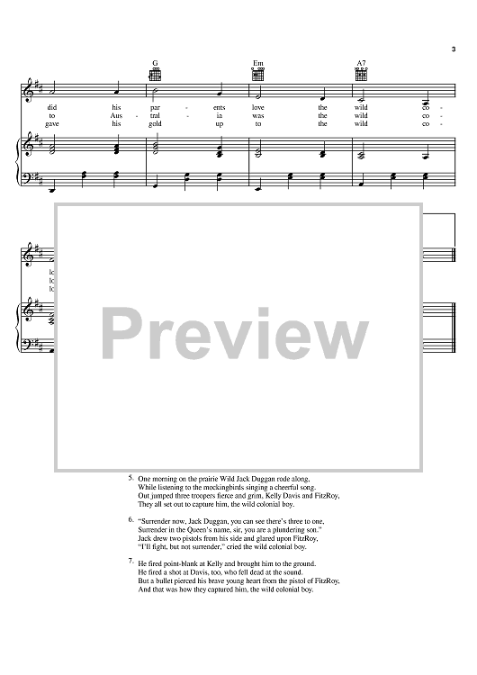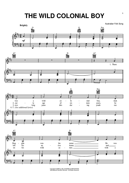 Digital Sheet Music for The Wild Colonial Boy by scored for Piano/Vocal/Chords; id:393956