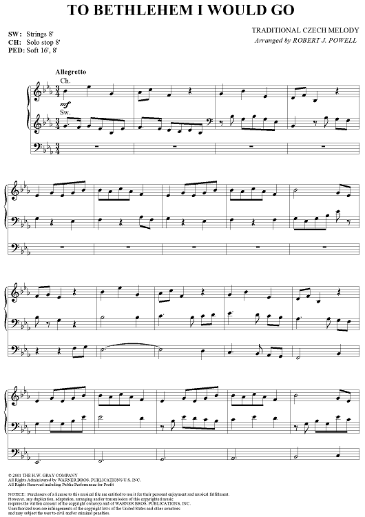 Digital Sheet Music for To Bethlehem I Would Go by Robert J. Powell, Traditional scored for Organ Solo; id:286984