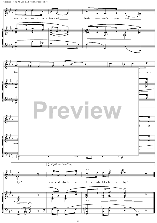 Digital Sheet Music for Too-ra Loo-ra Loo-ral - That's An Irish Lullaby by J.R. Shannon scored for Piano/Vocal/Chords; id:456575