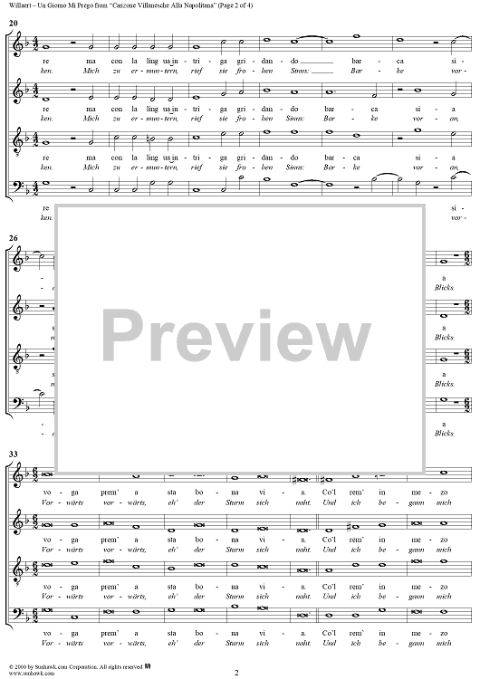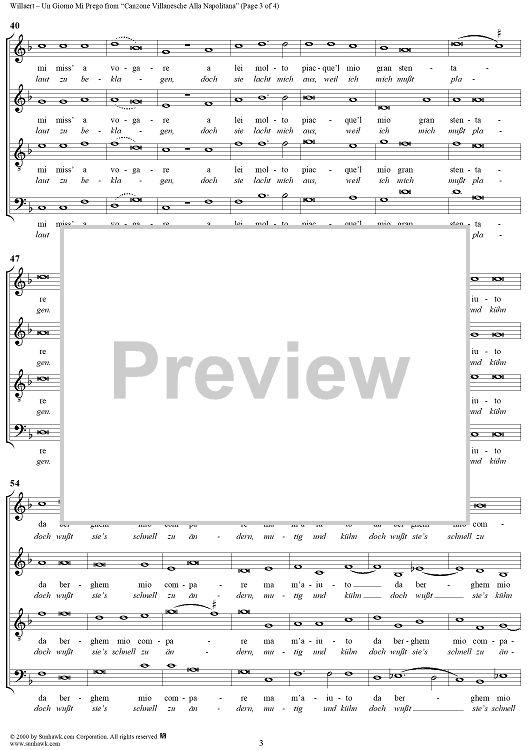 Digital Sheet Music for Un giorno mi prego, from "Canzone villanesche alla napolitana" (Venice, 1545) by Adrian Willaert scored for Four-part Mixed Chorus; id:276820