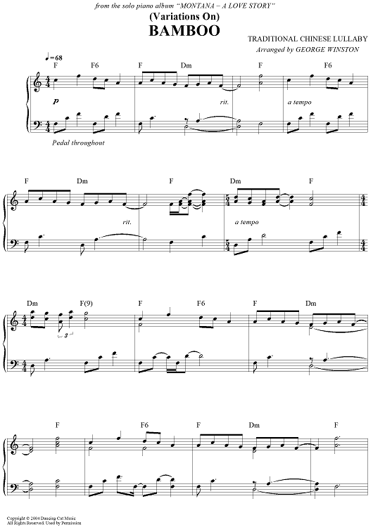 Digital Sheet Music for (Variations On) Bamboo by Traditional, George Winston scored for Piano/Chords; id:399110