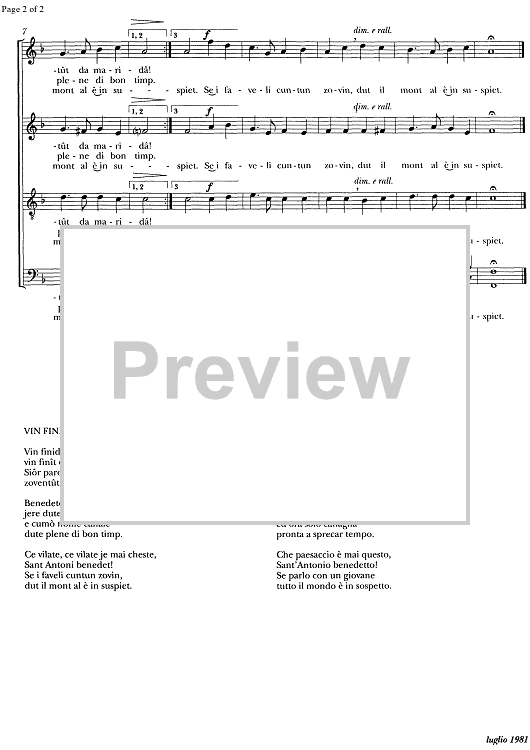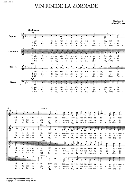 Digital Sheet Music for Vin finide la zornade by , Albino Perosa, Traditional scored for SATB Choir; id:334551