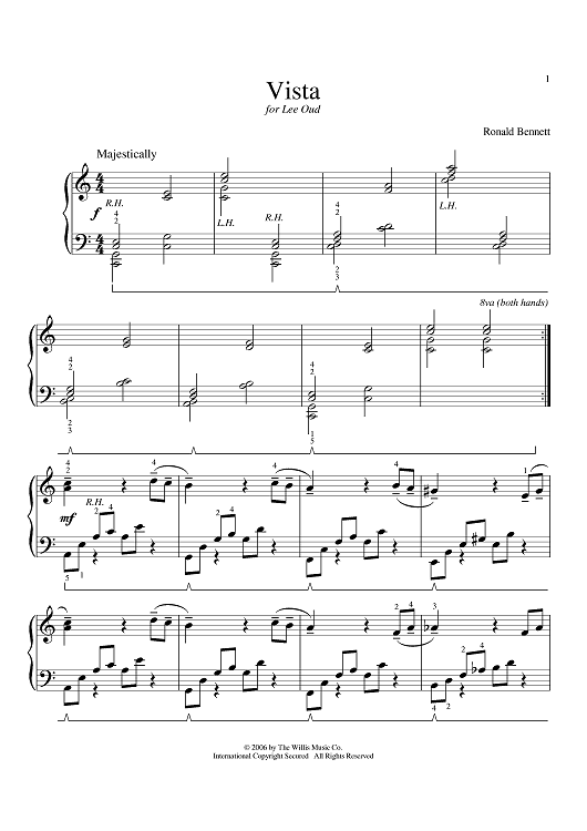 Digital Sheet Music for Vista by Ronald Bennett scored for Piano; id:388428