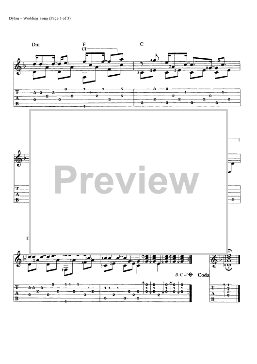 Digital Sheet Music for Wedding Song by Bob Dylan scored for Guitar Tab; id:445538