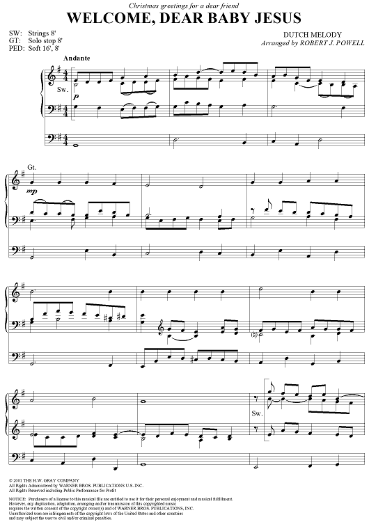Digital Sheet Music for Welcome, Dear Baby Jesus by Robert J. Powell, Traditional scored for Organ Solo; id:286983