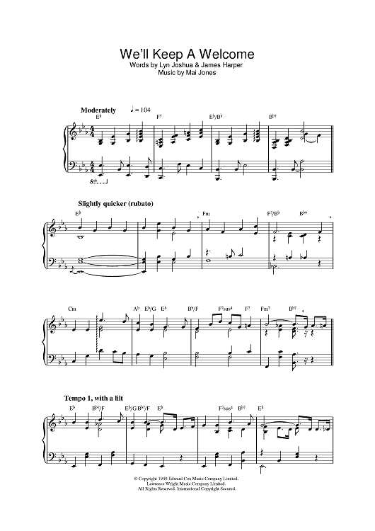 Digital Sheet Music for We'll Keep A Welcome by James Harper, Mai Jones, Lyn Joshua scored for Piano; id:385508