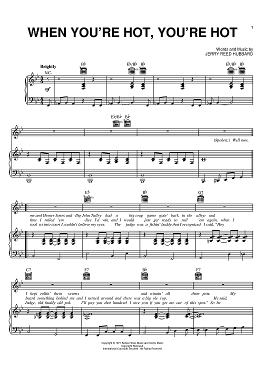 Digital Sheet Music for When You're Hot, You're Hot by Jerry Reed, Jerry Reed Hubbard scored for Piano/Vocal/Chords; id:388202